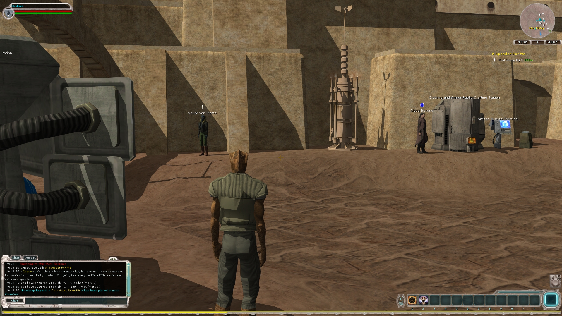 Over the years I’ve always kept a close eye on what was happening on these servers, and occasionally I had dropped onto one or two to just wander around my old stomping grounds. For numerous reasons however I had never fully invested myself in any of the characters which I had made on these servers. I first started playing Star Wars Galaxies in 2005 – after the CU and NGE updates which did so much to divide the playerbase. Therefore when I tried to play SWGEmu I always found it difficult to adjust. In theory, this version of the game appeals to me greatly. It’s more immersive in its attempt at recreating the Star Wars universe as it was during the timeframe that the game is supposed to be set (between A New Hope and The Empire Strikes Back), and it encourages emergent gameplay rather than being quest driven. It’s also woefully dated.