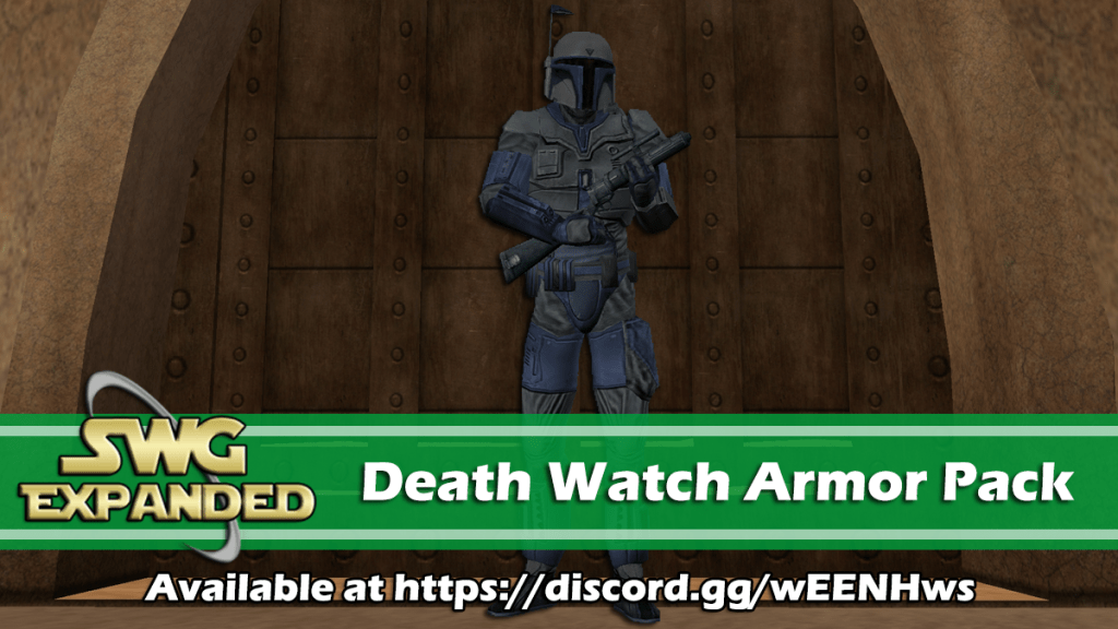 If The Book of Boba Fett has got you hankering for more Mandalorian content in your SWG then Expanded has you covered with its latest content release – the Death Watch Armor Pack. Featuring a colour scheme and armour piece combination more closely resembling their Expanded Universe aesthetic, any server is free to add this content to their own provided they give credit.